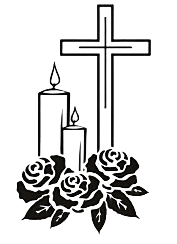 Този кръст е украсен с рози и свещи, съчетавайки символите на любов и памет. Подходящ е за некролози, които отдават почит на близките с нежност и уважение. Използвайте го, за да изразите своите чувства по уникален начин. Кръст цветя некролог, който излъчва любов и спомен. Розите символизират красота и вечност, докато свещите представляват светлина и духовност. Този дизайн е идеален за тези, които искат да добавят емоционална дълбочина и символика в некролога. Нежността на розите и спокойствието на свещите създават хармонична композиция, която докосва сърцата на близките. Свалете този кръст за некролог, за да предадете най-съкровените си чувства и да създадете незабравим спомен за починалия.
