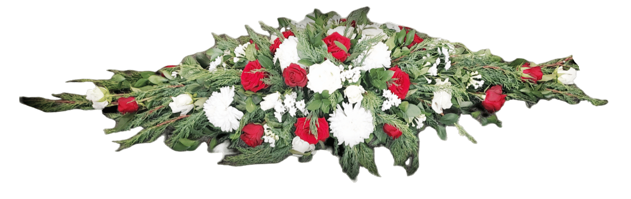 Този букет е класически и изразителен, съставен от бели и червени цветя, символизиращи чистота, невинност и любов. Бялото е традиционно използвано в погребални церемонии заради своята асоциация с чистота и ново начало, докато червеното добавя нотка на дълбока емоция и любов. Тази комбинация е подходяща за изразяване на искрени съболезнования и съчувствие. Този букет е перфектен пример за цветя за некролог, които предават силно емоционално послание.