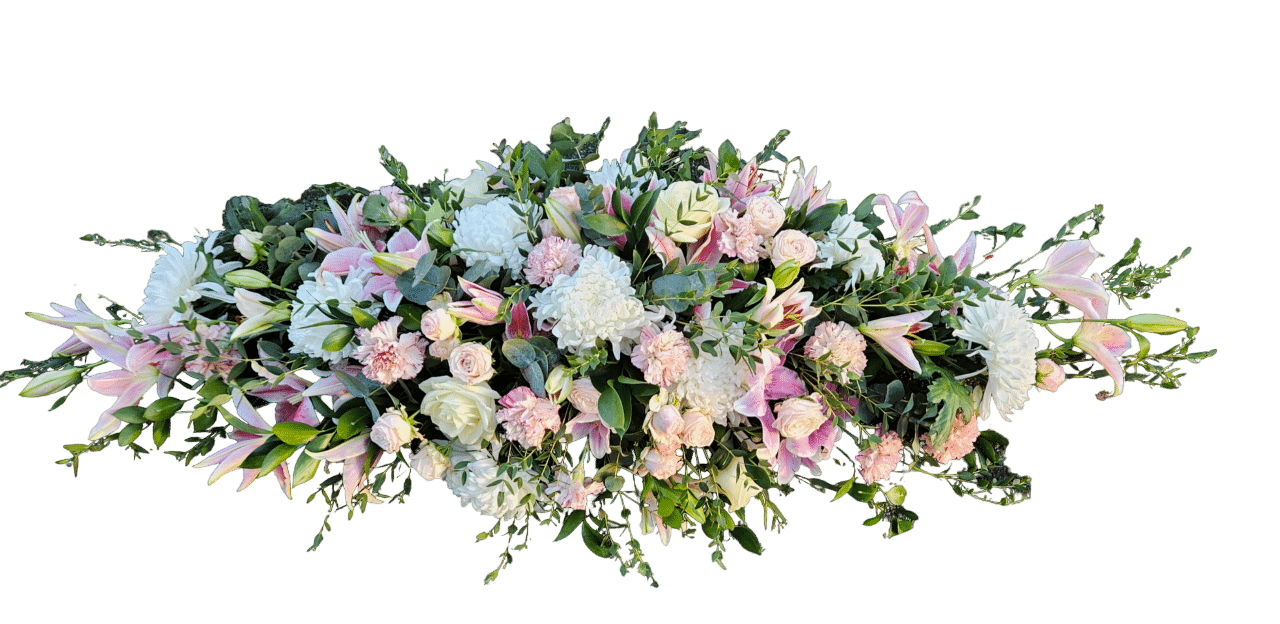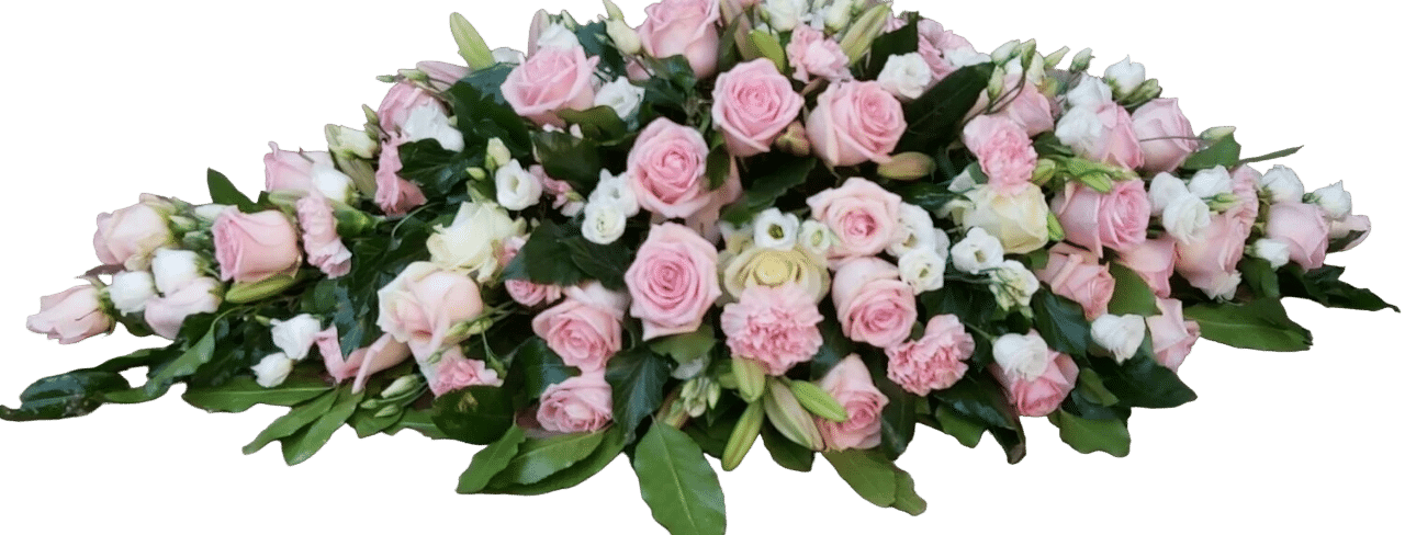 Розовите и бели цветя в този букет са нежни и романтични. Розовото представлява благодарност и признателност, докато бялото добавя нотка на чистота и мир. Тази аранжировка е подходяща за изразяване на дълбоки чувства и съчувствие. Тези цветя за некролог носят елегантност и нежност в трудните моменти.