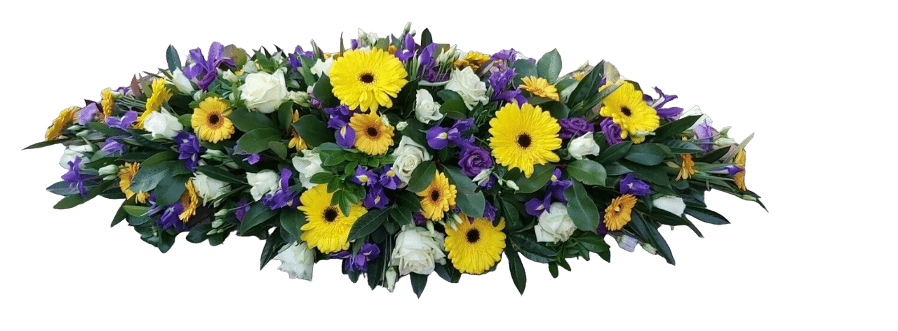 Цветната аранжировка с ярки жълти и бели цветя носи усещане за светлина и спокойствие. Жълтото символизира приятелство и подкрепа, докато бялото, както споменахме, представлява чистота. Тази комбинация е идеална за ситуации, където искате да предадете съобщение на надежда и мир. Тези цветя за некролог могат да добавят лъч светлина в мрачния момент.